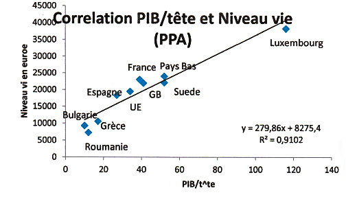 C’est en PPA qu’il faut raisonner, et l’on voit, dans cette étude, que la France vient seulement en 12e position, en Europe, si l’on tient compte de la Norvège et de la Suisse. Nous ne sommes donc pas en tête, loin de là, en matière de niveau de vie.