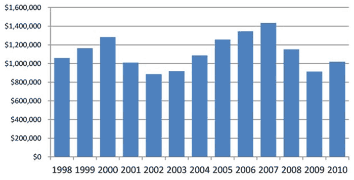 Le revenu moyen du 1% est même plus faible en 2010 qu’il était en 1998.