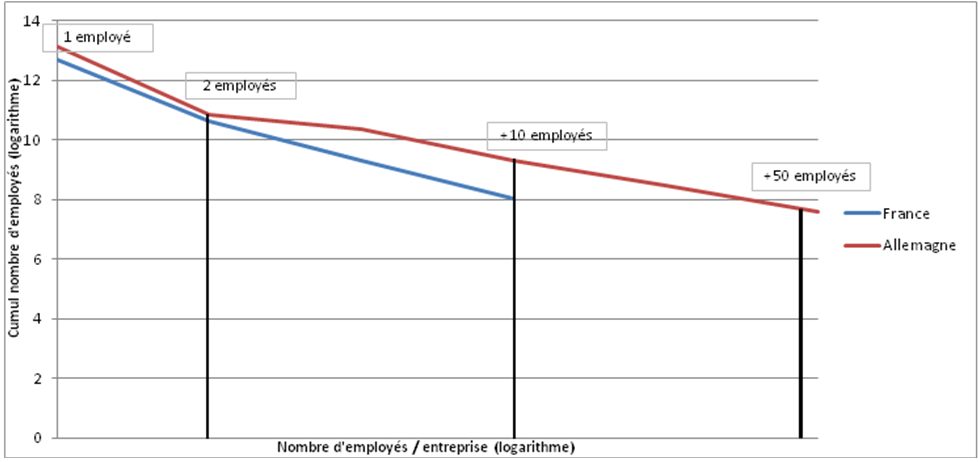 Si l’on compare les entreprises françaises et allemandes naissant avec 2 salariés ou plus, le fossé est apparent :