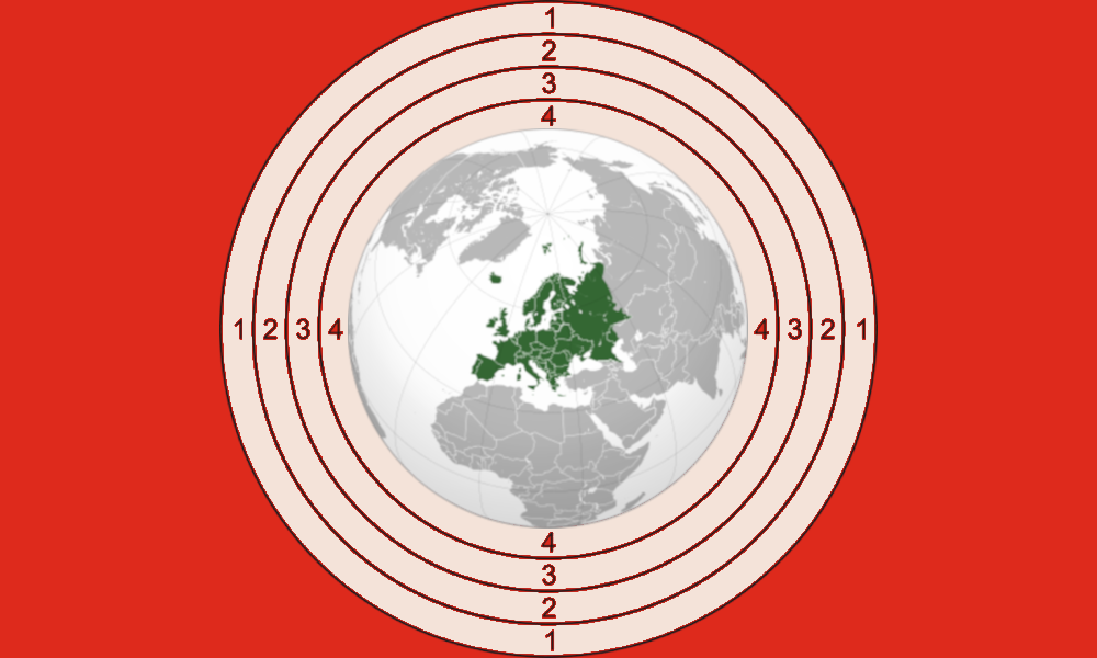 L’Europe se scinde en deux parties  : l’Europe de l’Ouest a choisi globalement de s’abriter sous l’ombrelle US, l’Europe de l’Est est tombée dans l’escarcelle de l’ex-URSS.