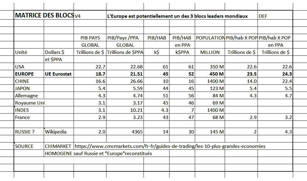 3. participer à  un bloc suffisamment homogène riche et important qui puisse  jouer dans la cour des grands : le moins difficile et le plus complémentaire semble  tout de même l’Europe ;