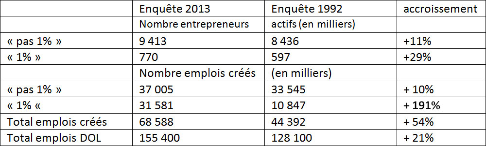 L’explosion des entrepreneurs avec vision à long terme, ceux du 1%, est visible sur le tableau suivant: