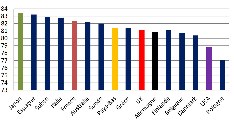 La conclusion de ce constat est donc double : premièrement l’espérance de vie en France est élevée, mais disparate et très « inégalitaire » (hommes / femmes ; différences régionales / décès prématurés élevés) mais en plus, pas meilleure que dans d’autres pays. Deuxièmement, cet indicateur n’est en rien le signe que le système de santé en France est de meilleure qualité que celui de ses voisins.