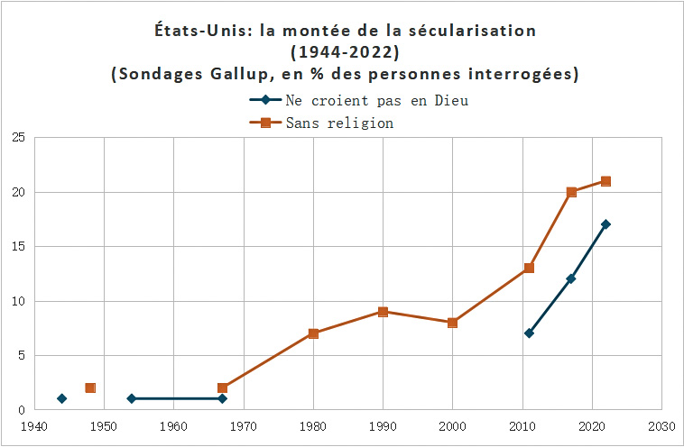 La puissance des États-Unis, au 19e siècle et pendant une partie du 20e, se construisait autour des White Anglo-Saxon Protestants (WASP), groupe dominant. Depuis deux générations, le déclin de la cohésion religieuse et ethnique de la population américaine est impressionnant.