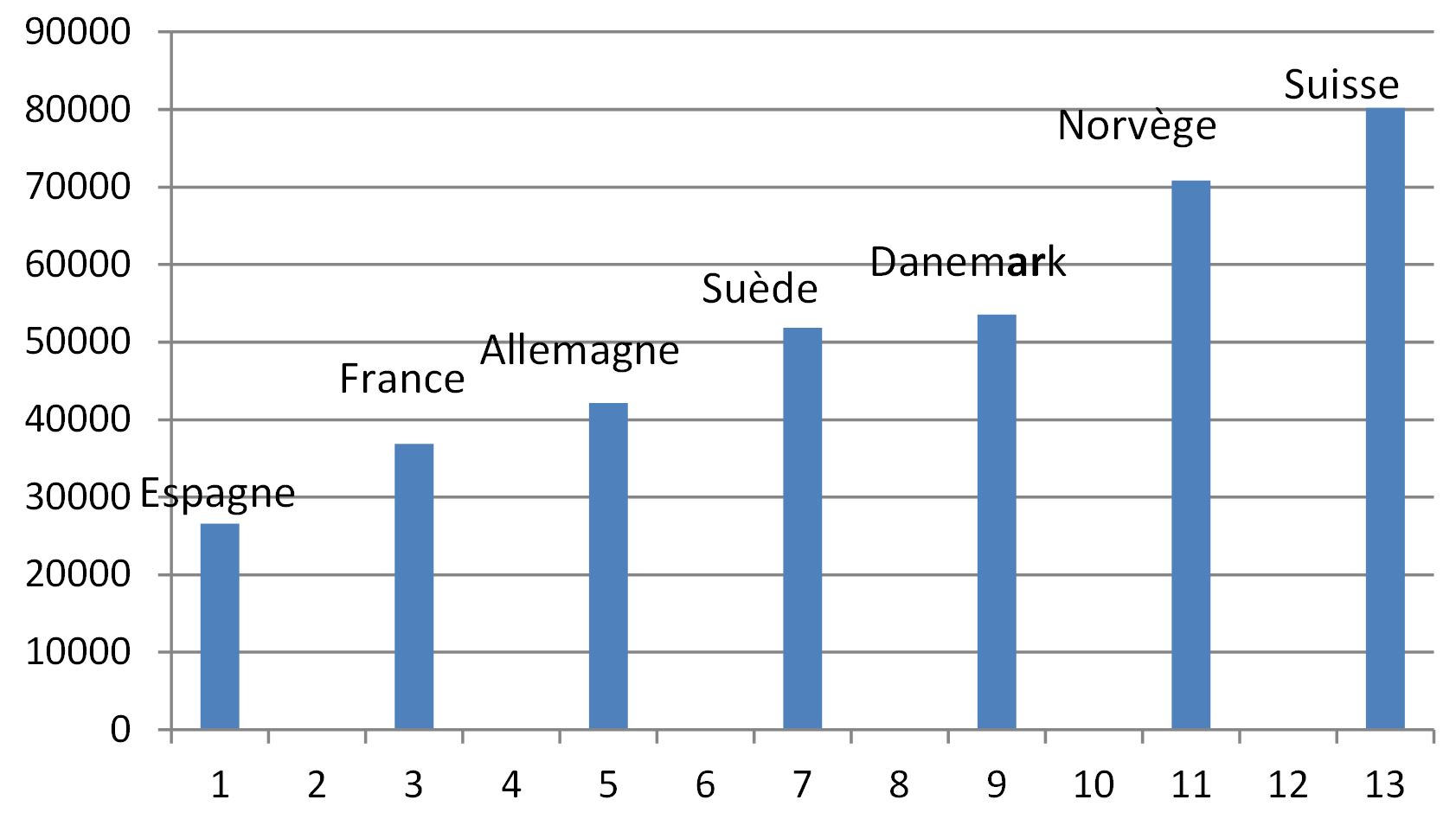 Nous en sommes à un PIB de 38.476 US$/tête actuellement, alors que l’Allemagne en est à 44.469 dollars, le Danemark à 56.307 dollars, la Norvège à 70.807 dollars, et la Suisse à 80.189 dollars. La France, dans l’UE, se situe seulement en 11e position, selon cet indicateur de richesse.