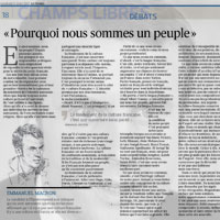 Dans Le Figaro du 17 mars, Emmanuel Macron a publié un article intitulé « Pourquoi nous sommes un peuple », en réponse aux indignations qu’a soulevées sa déclaration dans un meeting à Lyon où il a affirmé : « Il n’y a pas de culture française ». Quelque temps après, dans une réunion avec la colonie française de Londres, il aggrava son cas en formulant une nouvelle ineptie : « L’art français, je ne l’ai jamais vu ». De telles affirmations sont quelque peu inattendues dans la bouche d’un candidat qui brigue l’accès à la plus haute fonction dans notre pays, et il faut tenter de comprendre la réelle signification de son message. Il veut nous accoutumer à ce que certains sociologues appellent « l’insécurité culturelle », en parlant du communautarisme. Nous allons voir par quel subterfuge il veut nous convaincre que la notion d’identité française est archaïque, et qu’il n’y a pas lieu de s’y accrocher.