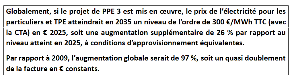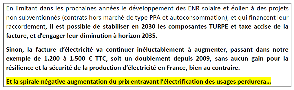 Porter la capacité de production des ENR intermittentes à 250 TWh à horizon 2035, comme le programme le projet de PPE 3, engage les conséquences économiques et financières sur le TURPE et la CSPE évaluées précédemment.