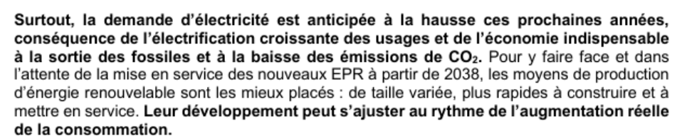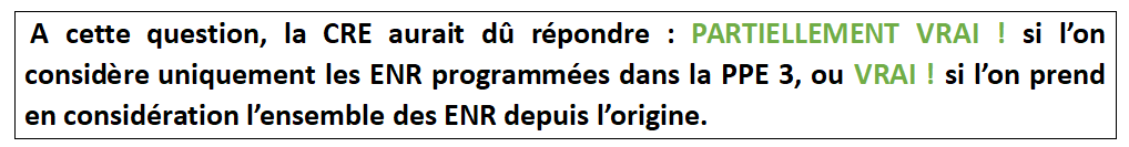 La CRE tire argument du fait que ce solde exportateur comporte 12 TWh d’importation, pour dire qu’il faut faire face aux périodes de pointe : mais l’intégration des réseaux à la maille européenne est faite pour cela, et surtout, ce n’est pas le développement des ENR qui permet de faire face aux périodes de pointe hivernales, car les ENR n’apportent aucune puissance garantie de production (à 19 h en hiver il n’y a pas de soleil, et pas de vent non plus en période de froid anticyclonique).