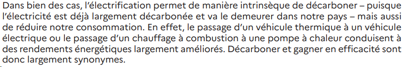 Fonder toute la stratégie énergétique de la France sur un tel oukase malthusien de réduction drastique en peu de temps de la consommation d’énergie est très regrettable, car de plus, cela fausse la vision de la production d’électricité bas carbone qui sera nécessaire pour décarboner l’économie : à horizon 2050, en retenant un taux d’électrification de l’ordre de 60 à 65 % dans la consommation finale d’énergie (production H2 incluse), la consommation d’électricité est de l’ordre de 560 TWh avec une hypothèse de consommation totale d’énergie de 900 TWh, et de l’ordre de 800 TWh avec la fourchette indiquée ci-dessus.